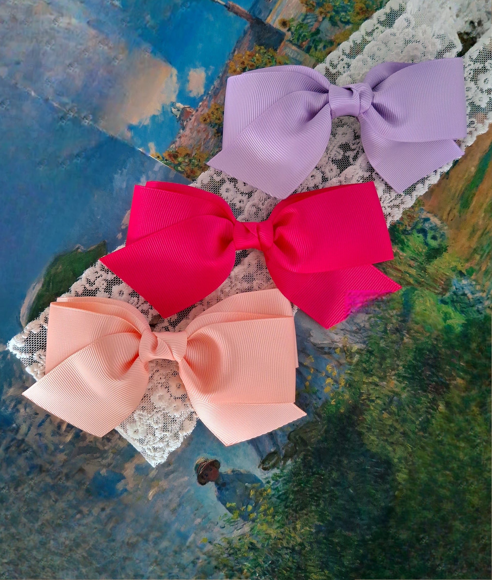 Short Tail Grosgrain Ribbon Hair Bow | Handmade Barrette Clip